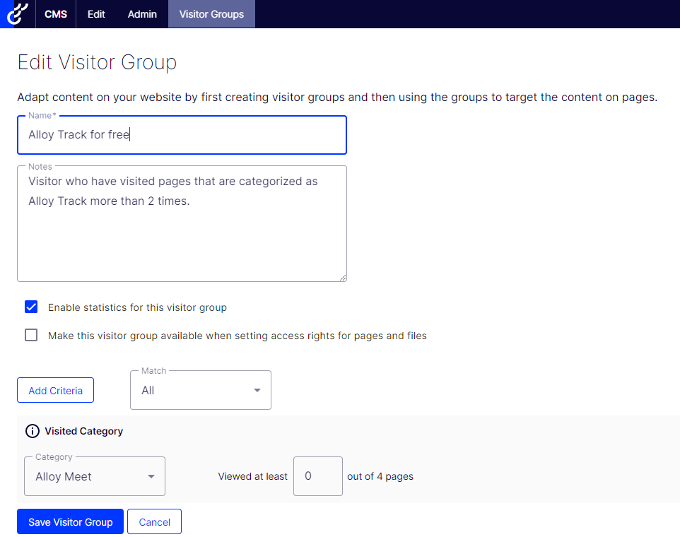 - The visitor must have visited the specified number of pages to which the category is applied.