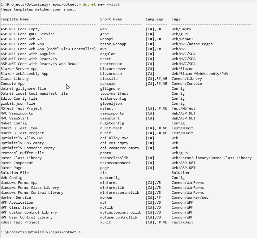This is the first article in a 3-part series on how to create an Optimizely based on the .NET5 framework. In this first article, I will cover the basics of the donet cli tools. In the second article, I will cover the templates that are available to create Optimizely sites. In the third article, I will cover how to create Optimizely sites, and how to configure them.
